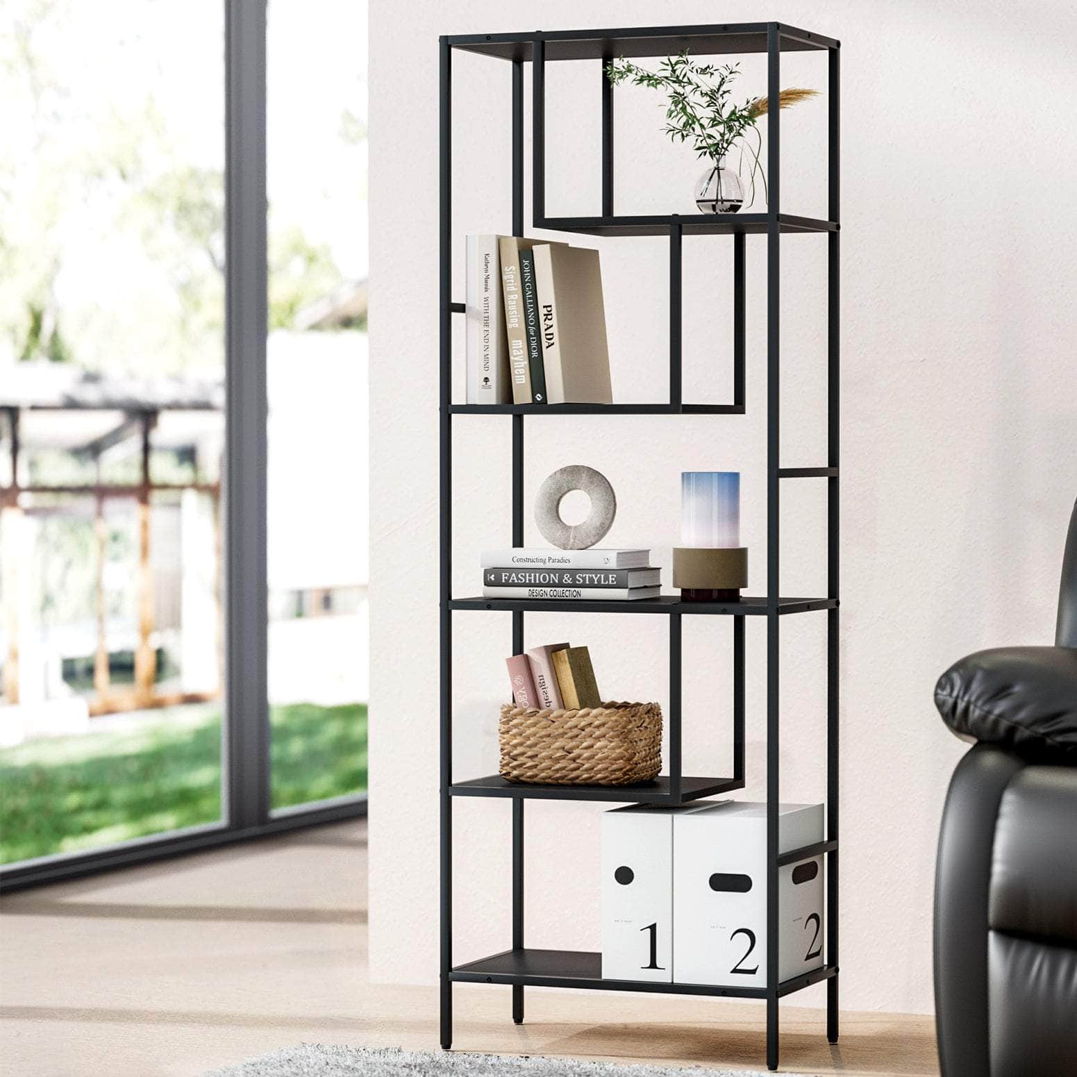 Show off your favourite home dÃcor with the Rhys Display Shelf. Built with a powder-coated metal frame, the shelves are rust and corrosion-resistant as well as strong and durable. Each shelf uses 12mm thick board and has a 10kg weight capacity to easily hold your books, games, artwork, souvenirs and other trinkets. Its simple and timeless industrial-esq design is perfect for a variety of interior styles in most modern homes. For added safety, use the included anti-tip hardware to prevent fall risks. The floor protectors on each leg will protect your floors from scratches and scrapes. Easy to assemble and even easier to maintain, the Rhys Display Shelf is the perfect addition to customise your living space.