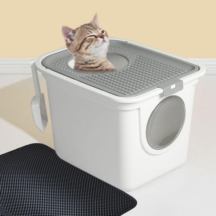 Trained your cat to use a litter box? Superb. That litter still gets kicked everywhere? Sadness. Your new kitty litter box keeps everything inside the box. The perforated roof knocks more litter from their paws.