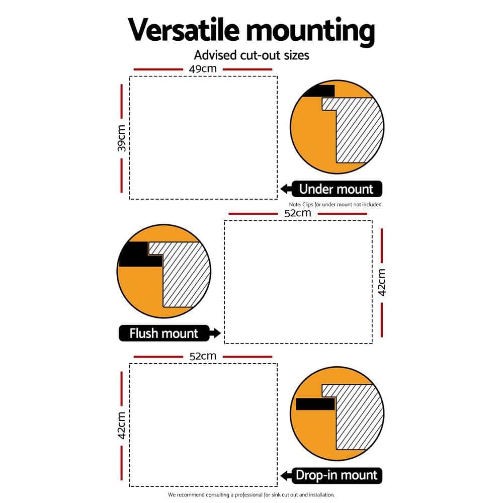Suitable for drop-in, flush mount and under mount