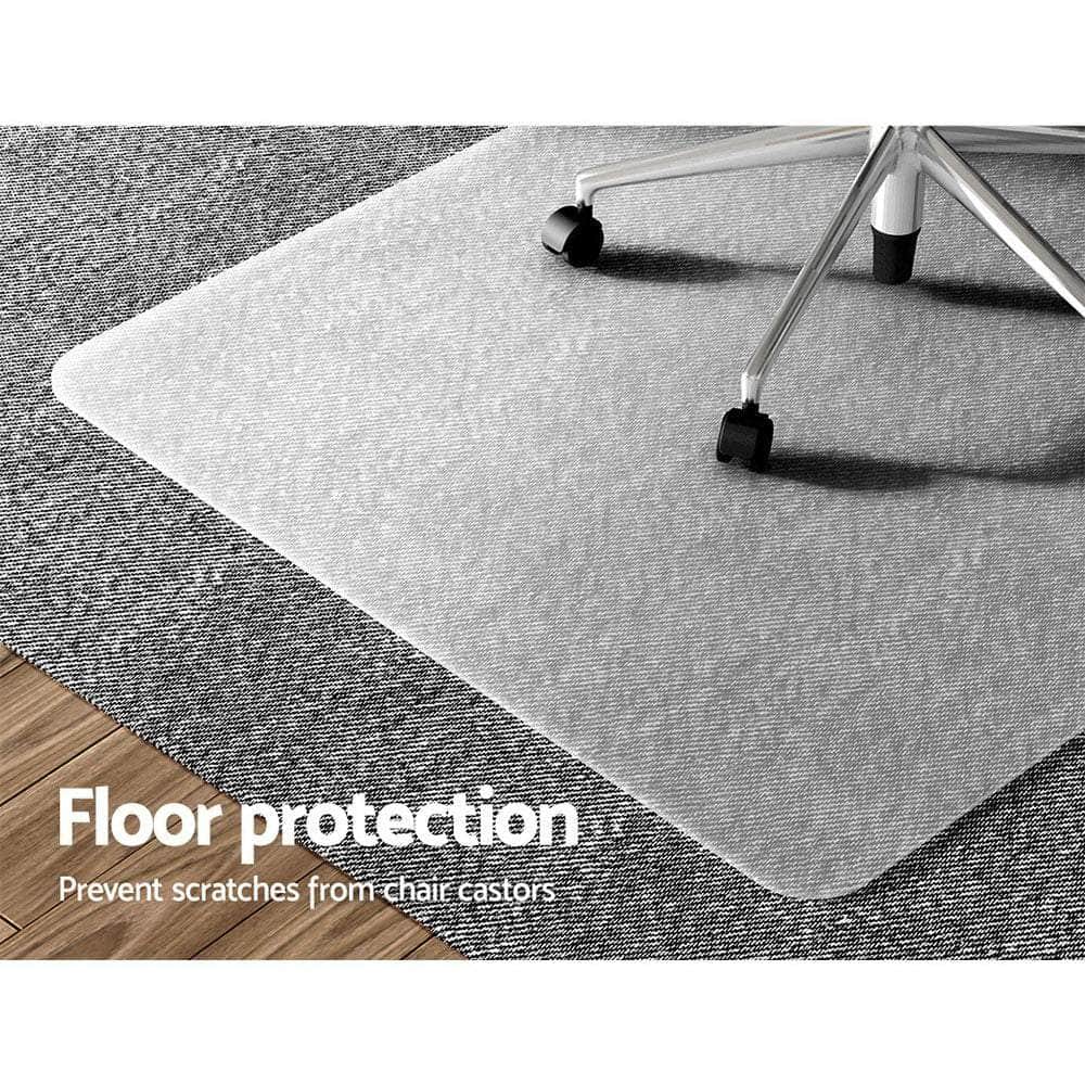 What a better way to keep your floors safe from scratches, scuffs, spills, and other marks. The Artiss chair mats are designed to prevent your floors from getting scratched due to chair castor wheels. It also suits carpeted surfaces and helps the chair to glide smoothly without applying force or pressure to move. The chair mat features notched stud design for good grip and stability, and the anti-slip bottom prevents from slipping on floors. It also comes with a lip extension for extra floor protection. So even when you tuck the chair under the desk, your floors will be safe. You can use our chair mat for various purposes. Use it under the dining chairs, bar stools, work desk, or pet food bowl. Our chair mat is made from premium PVC material, which makes them durable, longlasting, and easy to clean. Its stiffer and stronger construction protects your carpets from the dimpling effects of castor wheels. Furthermore, our chair mat comes well-packed and ready-to-use. All you need do is unroll the mat and lay it flat on the ground. You can add some weight on the edges to flatten it. For better results, keep it under the sun for two hours. Without second thought, purchase our Artiss chair mat for your space today.