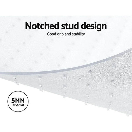 What a better way to keep your floors safe from scratches, scuffs, spills, and other marks. The Artiss chair mats are designed to prevent your floors from getting scratched due to chair castor wheels. It also suits carpeted surfaces and helps the chair to glide smoothly without applying force or pressure to move. The chair mat features notched stud design for good grip and stability, and the anti-slip bottom prevents from slipping on floors. It also comes with a lip extension for extra floor protection. So even when you tuck the chair under the desk, your floors will be safe. You can use our chair mat for various purposes. Use it under the dining chairs, bar stools, work desk, or pet food bowl. Our chair mat is made from premium PVC material, which makes them durable, longlasting, and easy to clean. Its stiffer and stronger construction protects your carpets from the dimpling effects of castor wheels. Furthermore, our chair mat comes well-packed and ready-to-use. All you need do is unroll the mat and lay it flat on the ground. You can add some weight on the edges to flatten it. For better results, keep it under the sun for two hours. Without second thought, purchase our Artiss chair mat for your space today.