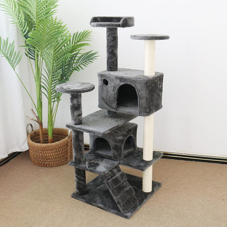 This cat tree has all your kittys needs covered by providing cosy spots to relax in, hideouts to retreat to at their leisure, scratching and perching opportunities, and playtime fun.
