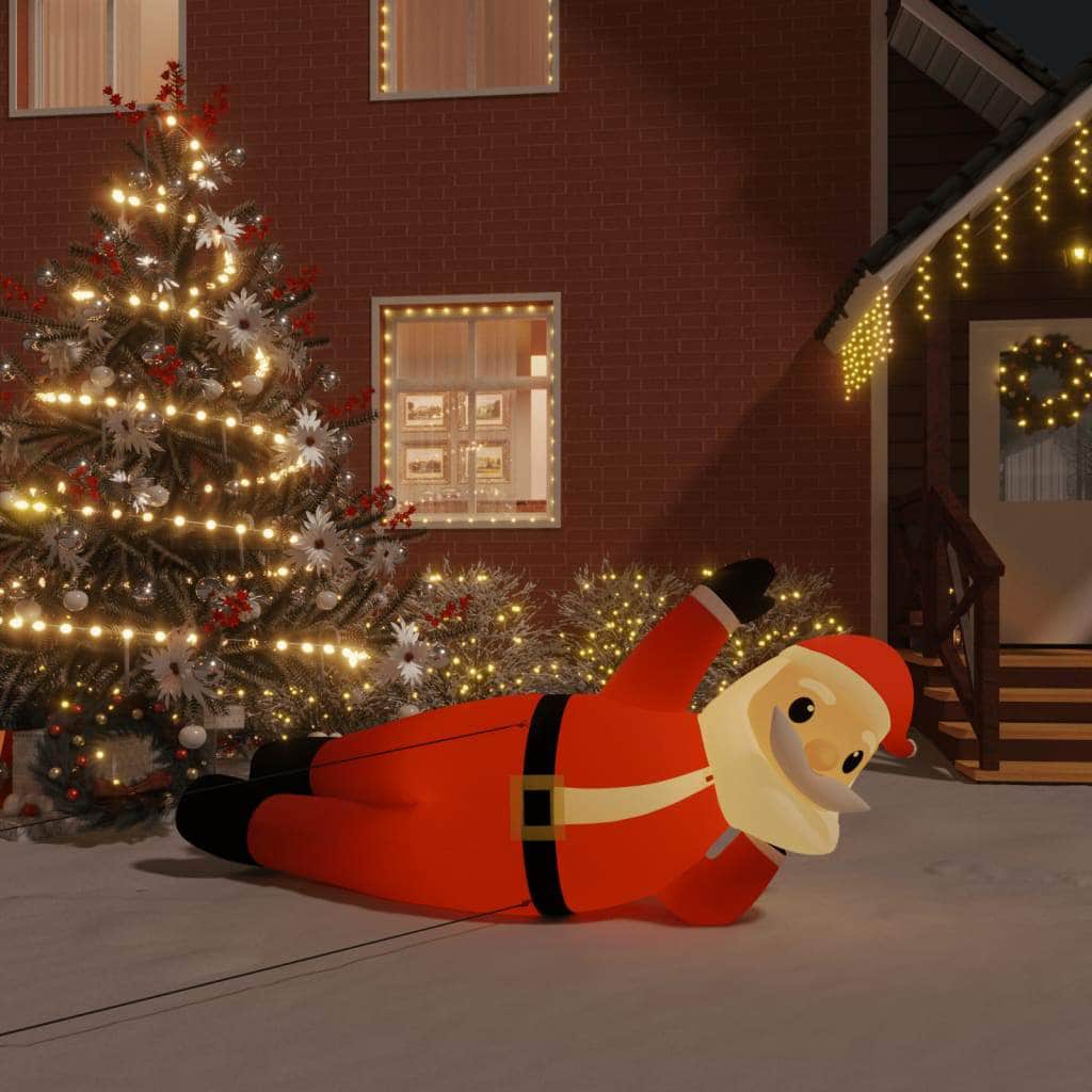 Spread the extra holiday spirit and create the ultimate festival Christmas display in your yard with this Christmas inflatable lying Santa! Practical material: Made of Oxford fabric with a PU coating, this Xmas decoration is lightweight, weather-resistant and easy to clean.Built-in LED lights: The inflatable party decoration features LED lights built inside, which enhance the festive atmosphere and make your house stand out.Quick inflation and deflation: The large blow up yard decoration has a built-in fan and can be easily inflated in minutes. Unplug the adapter, and the holiday decoration automatically deflates for easy storage. Note:Each product comes with an assembly manual in the box for easy assembly.