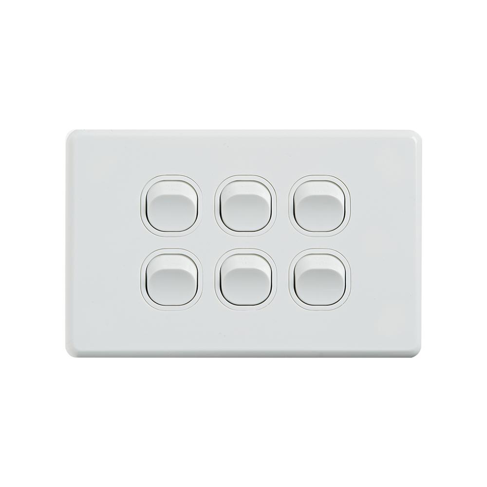 4C | Classic 6 Gang Switch 250V 16AX - Horizontal - 10 Pack with 10 FREE C-Clips