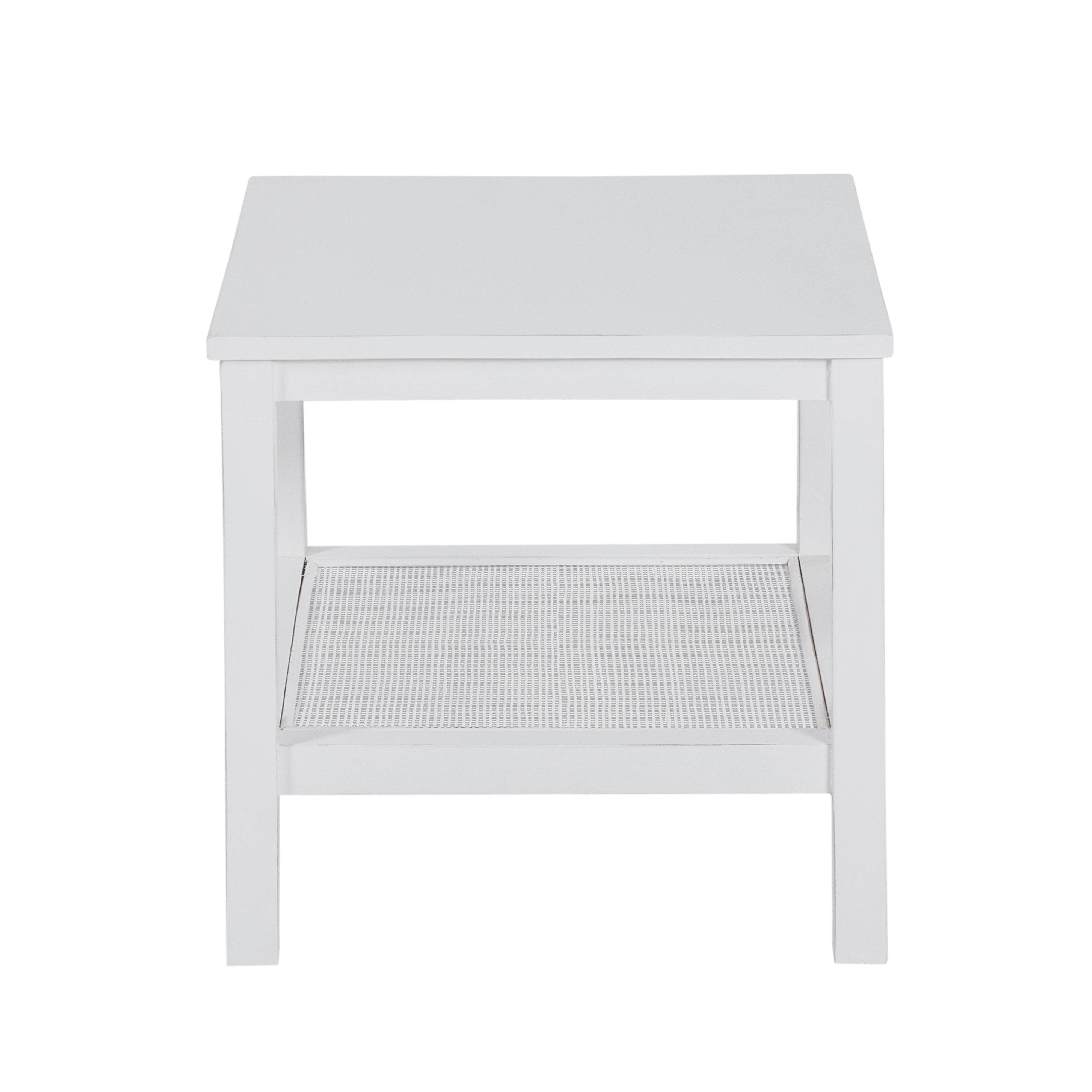 The side table is simply a multi-purpose furniture marvel! It is a table with attractive webbing on the lower part and is made of sustainably harvested solid Mindi wood. The Mindi wood is valued for its strength, longevity, and resistance to deterioration due to mould or moisture.Designed in a Bohemian style, with fibrous whiskers, bumps, slight cracks etc. as natural features, this small piece of furniture brings a sense of coziness and warmth to your living room. The distressed white finish makes the table suitable to complement diverse interior decor styles or furniture pieces. The fully assembled table comes with a one-year warranty.