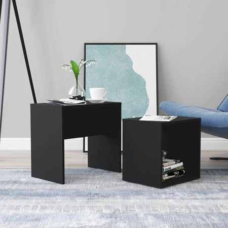 Our 2-piece coffee table set is the perfect alternative for small flats or any area with limited space. Its contemporary design makes this nesting table set a chic addition to your living room, bedroom or office. This side table set is made of quality engineered wood, making it sturdy and stable. The nesting tables are multifunctional. They can be used in the living room as a convenient surface to rest your drinks or any other necessities you need close at hand. The small coffee table, with its shelving-design, can offer you extra space for storing magazines, DVDs or other items. This set is space-saving as the smaller one can be hidden underneath the big coffee table when not in use. You can also bring one of them into your bedroom for use as a unique nightstand! The coffee table set is easy to clean with a damp cloth. This nesting table set is also easy to assemble.