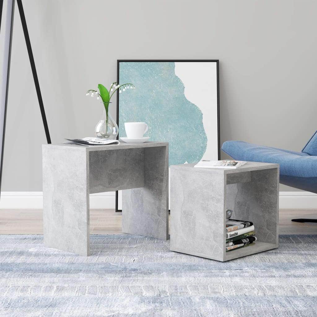 Our 2-piece coffee table set is the perfect alternative for small flats or any area with limited space. Its contemporary design makes this nesting table set a chic addition to your living room, bedroom or office. This side table set is made of quality engineered wood, making it sturdy and stable. The nesting tables are multifunctional. They can be used in the living room as a convenient surface to rest your drinks or any other necessities you need close at hand. The small coffee table, with its shelving-design, can offer you extra space for storing magazines, DVDs or other items. This set is space-saving as the smaller one can be hidden underneath the big coffee table when not in use. You can also bring one of them into your bedroom for use as a unique nightstand! The coffee table set is easy to clean with a damp cloth. This nesting table set is also easy to assemble.