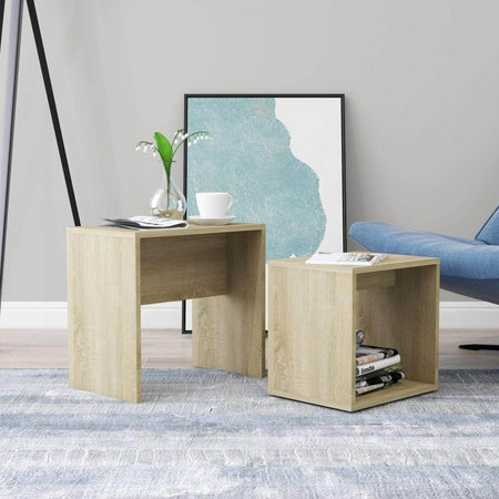 Our 2-piece coffee table set is the perfect alternative for small flats or any area with limited space. Its contemporary design makes this nesting table set a chic addition to your living room, bedroom or office. This side table set is made of quality engineered wood, making it sturdy and stable. The nesting tables are multifunctional. They can be used in the living room as a convenient surface to rest your drinks or any other necessities you need close at hand. The small coffee table, with its shelving-design, can offer you extra space for storing magazines, DVDs or other items. This set is space-saving as the smaller one can be hidden underneath the big coffee table when not in use. You can also bring one of them into your bedroom for use as a unique nightstand! The coffee table set is easy to clean with a damp cloth. This nesting table set is also easy to assemble.