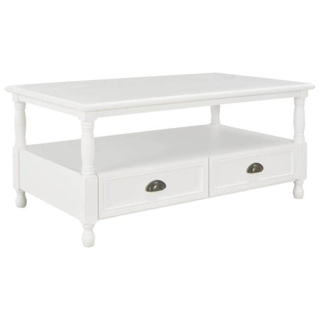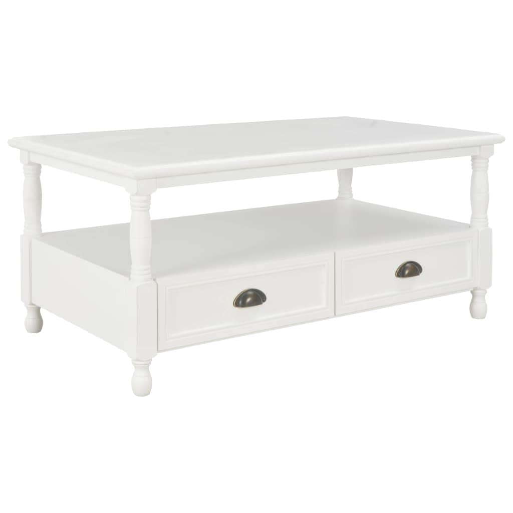 Add a touch of elegance with our stylish wooden coffee table! Featuring lacquer finish in white, this coffee table with 2 drawers and an open compartment offers ample storage room. With fine craftsmanship, it will be an instant upgrade to your living room interior. Whether you are looking for a coffee table to rest your drinks or other necessities, or an end table with storage function, this table has it all. 2 drawers and an open compartment bring artful organization to magazines, books and more, whereas the contemporary design compliments the existing decor of your home. Made of MDF, solid pine wood and a unique paulownia veneer, this coffee table is built to last.