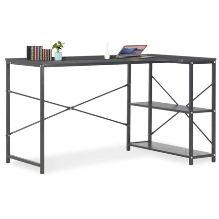 Like all the best design, our simple yet stylish computer desk is clean, space-saving, and sure to never date. It provides a large working area, making it very practical, convenient and versatile piece of furniture for use at home or in the office. The L-shaped desk is designed with two shelves for organizing your books, folders, documents or displaying decorative items. Made of engineered wood and powder-coated metal, the writing desk is exceedingly stable, sturdy and durable. Additionally, the metal frame endows the desk an industrial style, bringing a touch of unique charm to your interior. Upgrade your interior to the next level with our modern office desk!