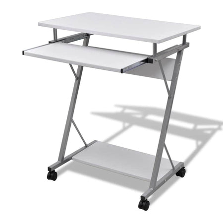 The compact computer desk for laptop and desktop is designed for space saving and will be a real eye-catcher in your room thanks to its modern stylish look. The large work surface allows you to comfortably use your computer and use writing materials. This computer desk is designed with a sliding keyboard section and a bottom shelf for CPU tower or printer.Constructed of particle board and powder-coated steel frames, this computer desk will surely bring you years of service. Care instructions: wipe clean with clean damped cloth. The installed castors are designed for convenient mobility.