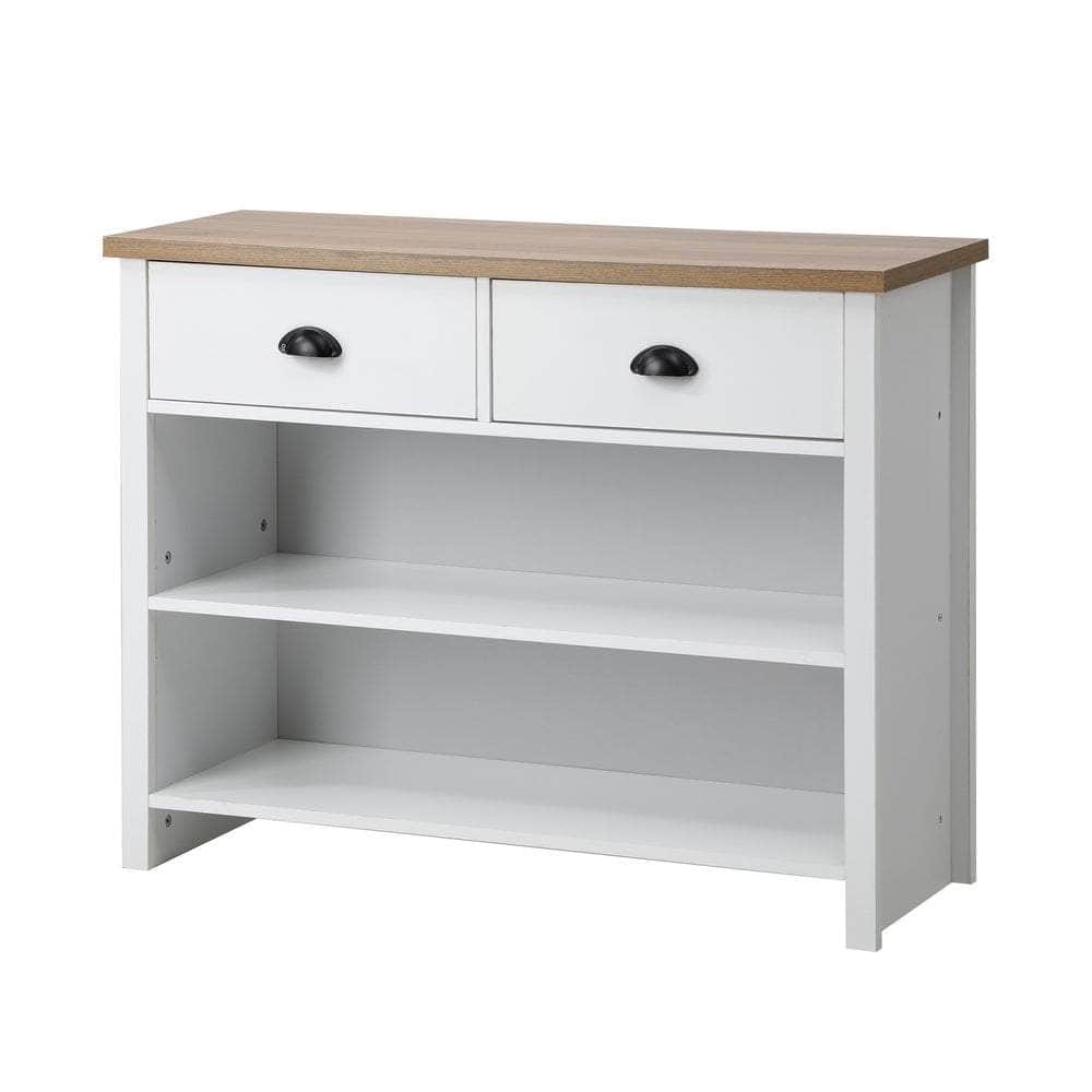 Attention to details is just as important as the generous proportions of two spacious drawers augmented with stylish semi-circular zinc alloy handles and two large open shelving. Just perfect to display all your treasured mementos and collectibles on various levels and ample closed storage for home essentials and more.