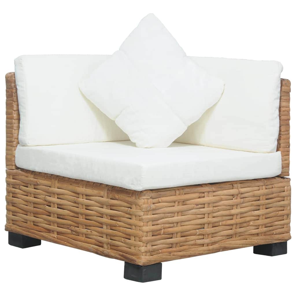 This stylish and functional corner sofa will make a great addition to your living room or conservatory! The frame is covered with natural rattan, which is not only attractive with its natural look and feel and decorative weave patterns, but also durable in use. The sofa legs are made of mahogany and mango wood, which is in strong support and high stability. The cushions add comfort and a cosy feel. The corner sofa is easy to assemble. Delivery includes 1 corner sofa, 1 seat cushion, 2 back cushions and 1 pillow.