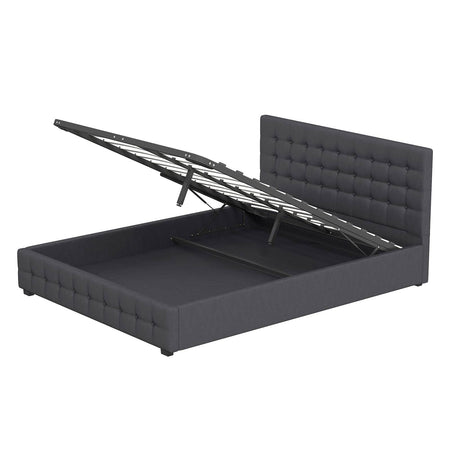 Decor Eden Gas Lift Storage Bed with Headboard Dark Grey Upholstered Single