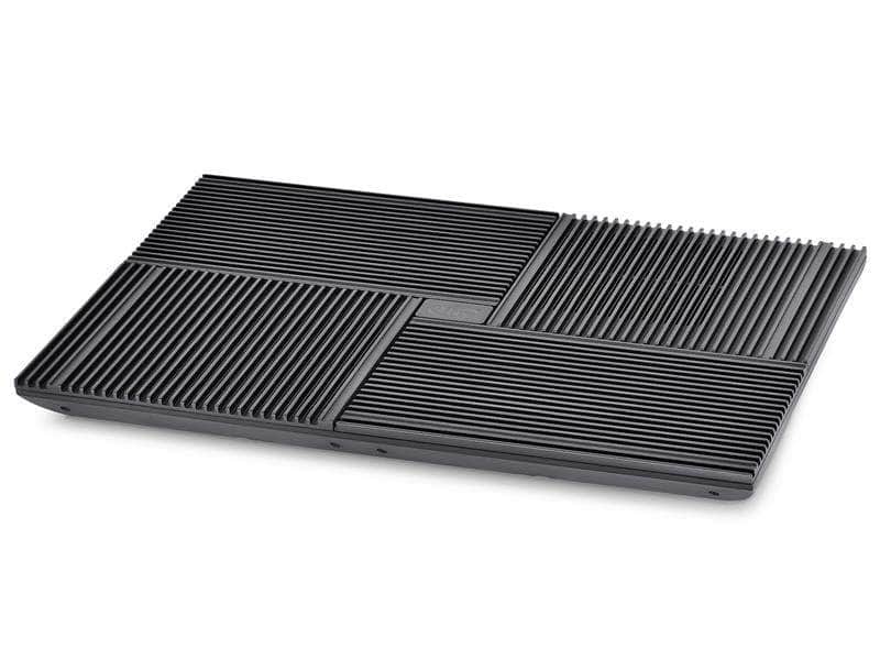 Deepcool Multi Core X8 Four Fans & Four Directions The whole panel is divided into four parts with 4 built-in fans down below. With Vertical Airflow Design, the airflow will go to four directions. Aluminium: Cool Feeling Aluminium is an efficient material for thermal dissipation. Four pieces of aluminium panels are anodised into black colour to provide a cool feeling in appearance. Superb Cooling Performance The initiative design of 4 fans blowing into 4 different directions makes full use of the dissipation area, and also covers all heating points of your notebook. This cooler can cool your hottest spots no matter it is hard disk drive or VGA card area. Multi-core Control Technology According to the heating condition of the notebook, the creative Multi-Core Control Technology enables users to apply 4 different fan-working statuses: 4 fans on / 2 upper fans on / 2 downside fans on / 4 fans off.
