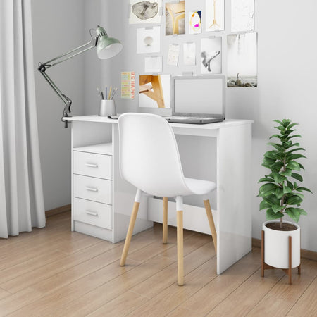 Our sleek and modern desk will be a practical addition to your study and working area! Made of quality board, this computer desk ensures sturdiness, durability and long service life. Our workstation is perfect for any tight office, dorm space, space-limited house, or even if you just prefer to manage the space you have! The 3 drawers and an open compartment on the side of the desk provide ample storage space for keeping your study supplies such as books, files or other useful items within reach. Additionally, the office desk is easy to clean with a damp cloth.