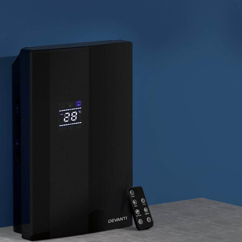 Do you have recurring moisture issues in your home, like mould growth or heavy condensation? Or are you just looking for something to clear the air? Then you need the Devanti Dehumidifier for your home. Many home pests love moist and dark environments, but our dehumidifier will pull water out of the air to reduce damaging moisture in your surroundings, preventing mould, dust mite and mildew growth in your furniture and clothes. Tired of drying clothes indoors? Use the dehumidifier to speed things along � helps to dry clothes faster without using a dryer. The photocatalyst filter removes bacteria and allergens from the air, making the machine a 2-in-1 dehumidifier and air purifier. Control from anywhere inside the home with the included Smart Controller and set timers for up to 24 hours for automatic peace of mind. The dehumidifier operates whisper quiet, so you won�t need to worry about interrupted sleep or household activities. Select from two draining options: The 2L removable water tank with full tank indicator, or continuous drainage with the included 1.5m water pipe. Other great features include an auto-defrost mode for proper machine maintenance, two convenient handles for portability and 30? coverage to suit both small and larger rooms. Turn your home from damp to delightful with a Devanti Dehumidifier.