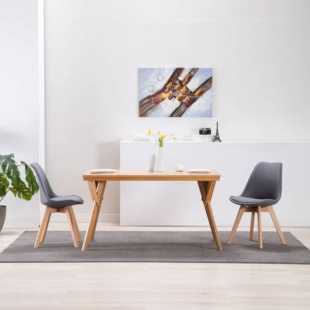 These fabric dining chairs have a timeless appearance thanks to their retro styling. They can also be used as stylish office chairs. The dining chairs have strong wooden legs. Upholstered in high-quality fabric, the seat is padded for added comfort. Add a touch of cool retro style to your living space with this set of dining chairs! Delivery includes 2 dining chairs. The chairs are easy to assemble.