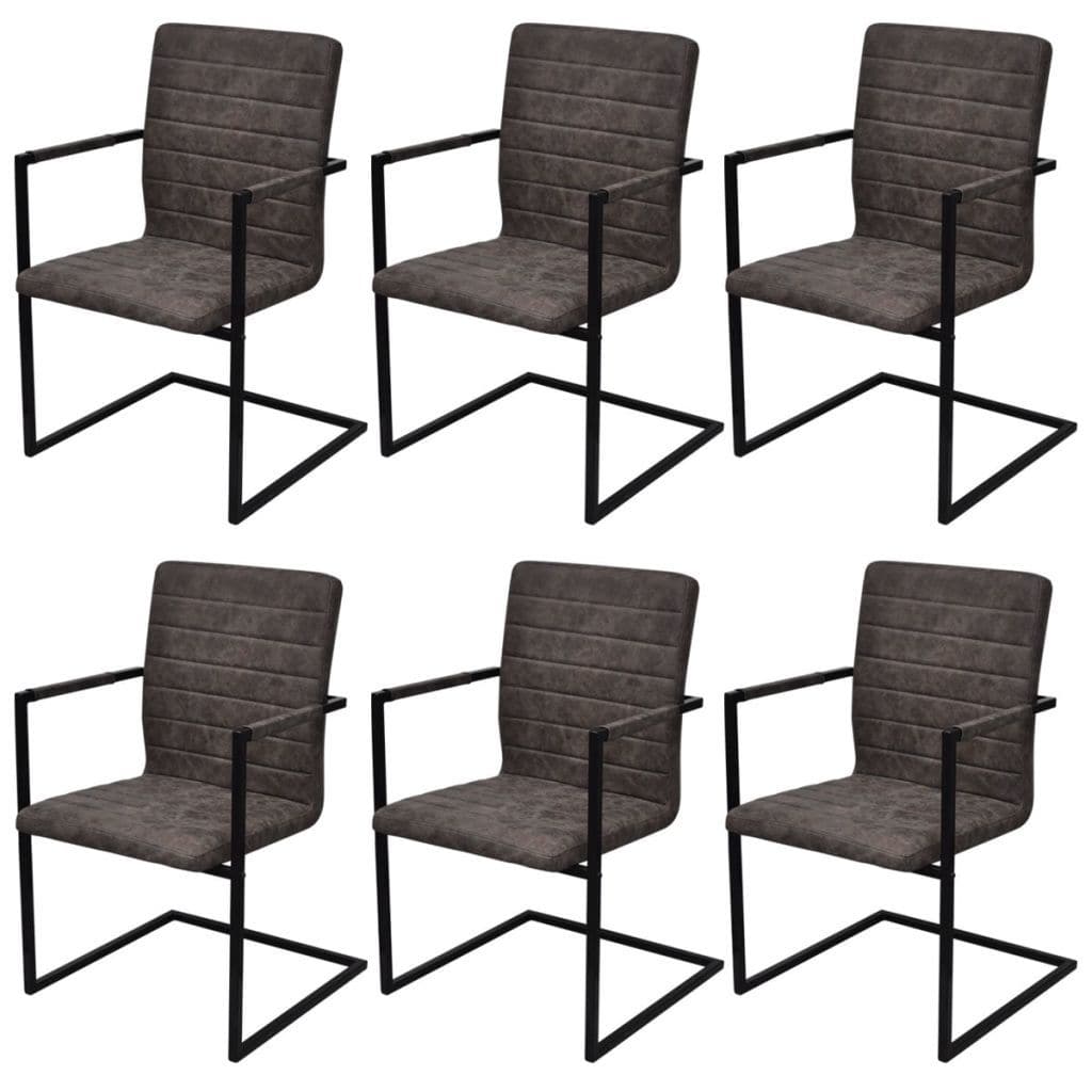 These cantilever dining chairs have a sleek, streamlined look, which suits a modern interior perfectly. They will become the focal point of your dining area at home or add a stylish touch to your office decor. The thickly foam-padded seat will offer the utmost seating comfort and great support for your back. The ribbed seat is upholstered in hardwearing and durable PU leather, which gives the dining chairs a luxurious look and feel. This dining chair set is not only lightweight but also sturdy thanks to its strong tubular steel structure. Assembly is really easy. Delivery includes 6 dining chairs.