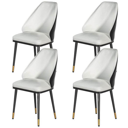 Dining Chairs Set of 4 Leather Seat Beige and Black - Modern