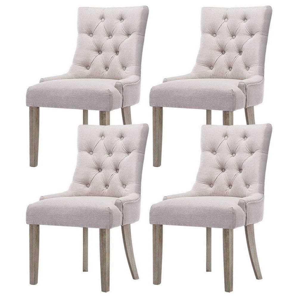 Set of 4 French Provincial Dining Chairs in Beige Linen – Elegant Vintage