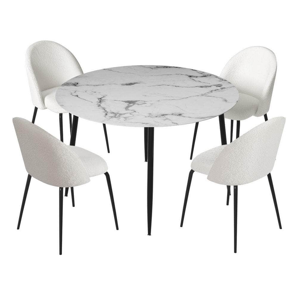 Everyone needs a dining table, and there's no dining table like an Marble Dining table. The table is an affordable alternative to real marble, made from particle board with a marble finish and sturdy metal legs without sacrificing elegance. Simple and modern, the table instantly makes a statement in your dining room with its minimalist appeal and sleek, sophisticated appearance. The round table features smooth edges for safety while the anti-rust, powder-coated steel legs are sturdy and durable with a weight capacity of up to 90kg. With its practical, industrial-style aesthetic, the dining table will suit most home and décor types and provides plenty of room for a family of four, whether it's dinner time, book club or board game night.