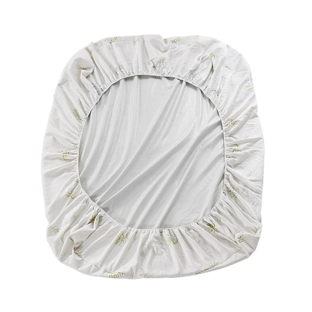 DESCRIPTIONDesigned with your comfort in mind, our new version mattress protector features an anti-fungal, antibacterial, hypoallergenic and antimicrobial properties of the natural bamboo fibre containing 70% recycle bamboo fibre which adds 25 to 45 percent more than others. It helps regulate temperature and wicks away moisture, creating a comfortable sleep environment and allows fresh air to flow while act as a barrier against liquid or dust mites penetrating into your mattress. High bamboo component acting as a soft and breathable agent adds the sweet to your dreams. This mattress protector features impermeable 100% waterproof TPU back coating that provides protection on top of the mattress. It ensures that you won't hear a plastic noise when you move during the night, while the soft top provides you with unparalleled comfort.