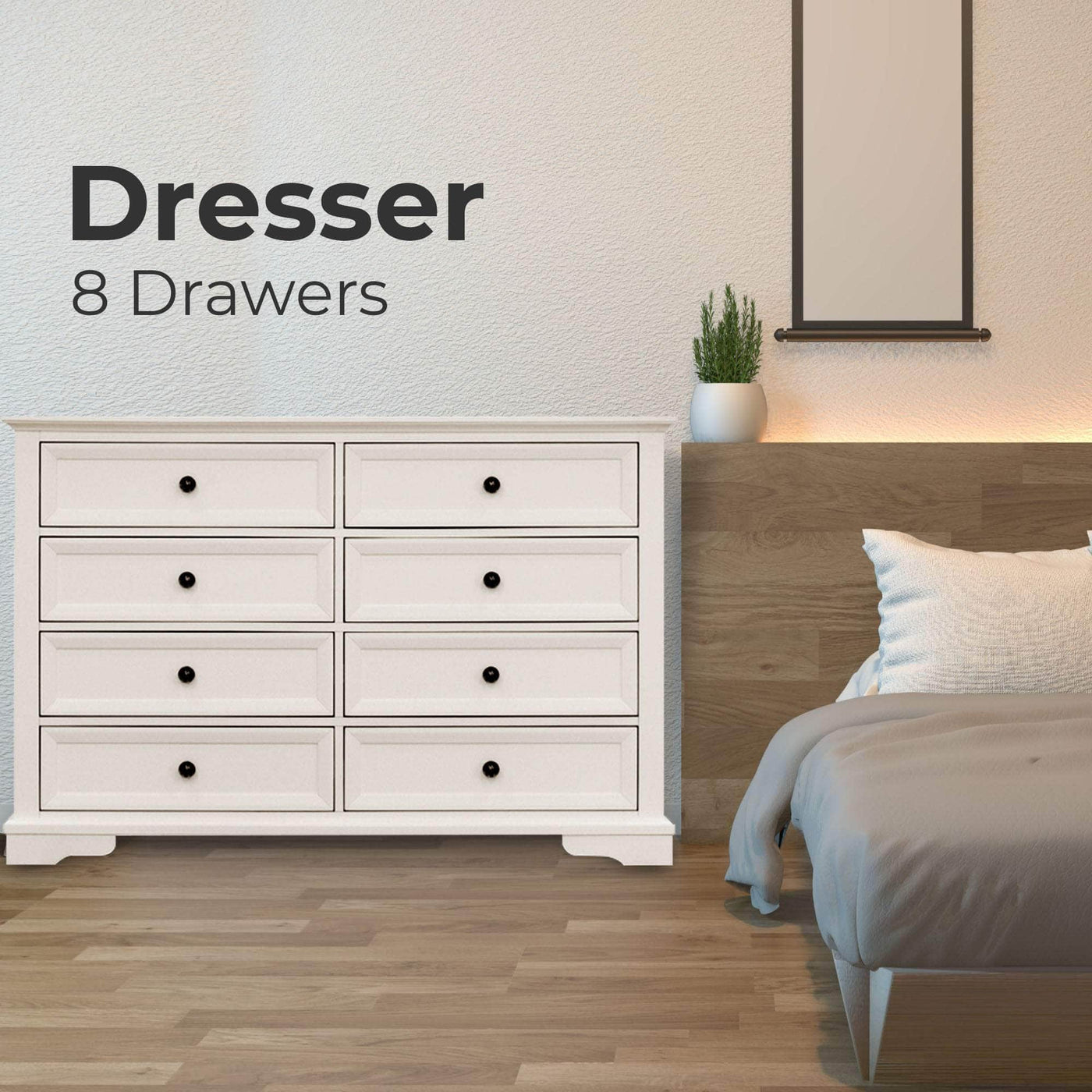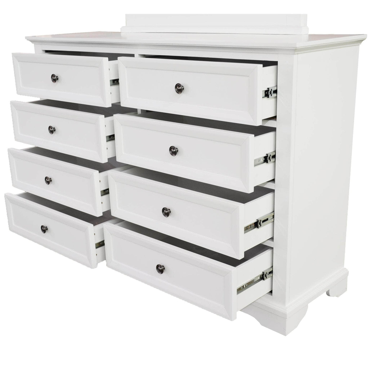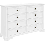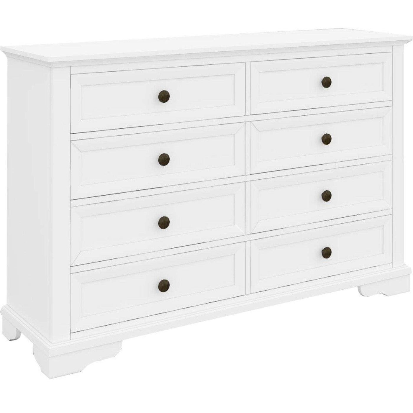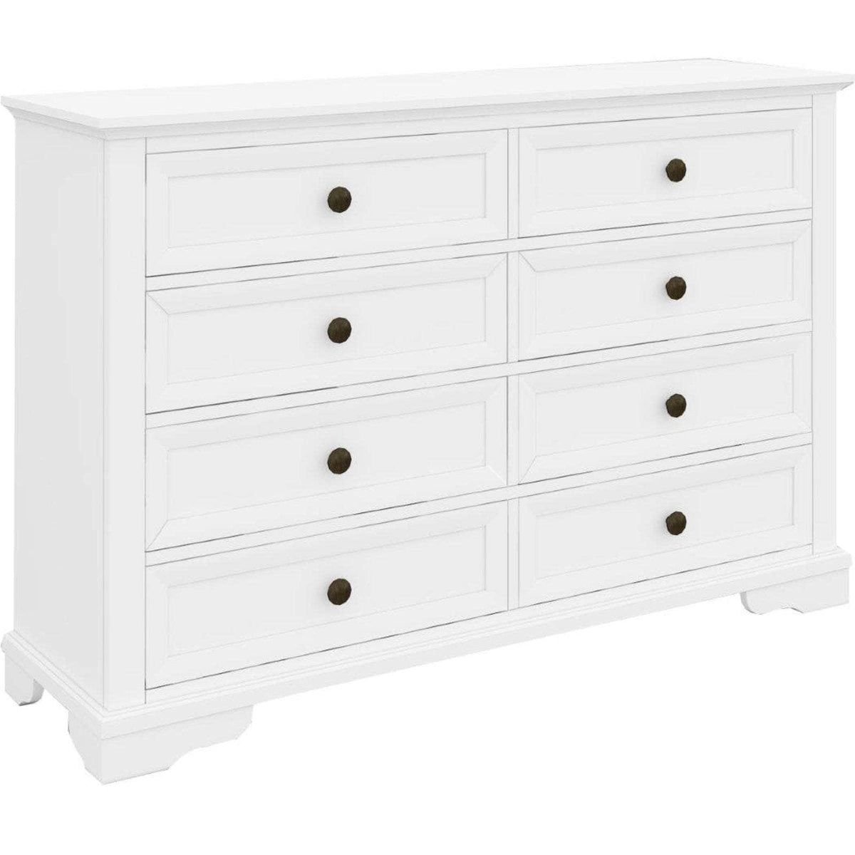 A dresser makes your life easier by resolving the storage problem in your bedroom. You can give your bedroom a tidy look with the help of this lovely 8-drawer dresser. Designed in the coastal style, the dresser complements your bedroom wonderfully. It has spacious drawers, and all the drawers have full metal extension runners with beautiful black metal knobs. The top drawer has black felt for the safe storage of delicate items. The dresser is made of sustainably harvested solid acacia timber. The wood is known for its good looks, shock-resistance, and durability. The furniture piece in a white painted finish goes well with a variety of interior decor styles, and a one-year warranty is included with the fully-assembled dresser.