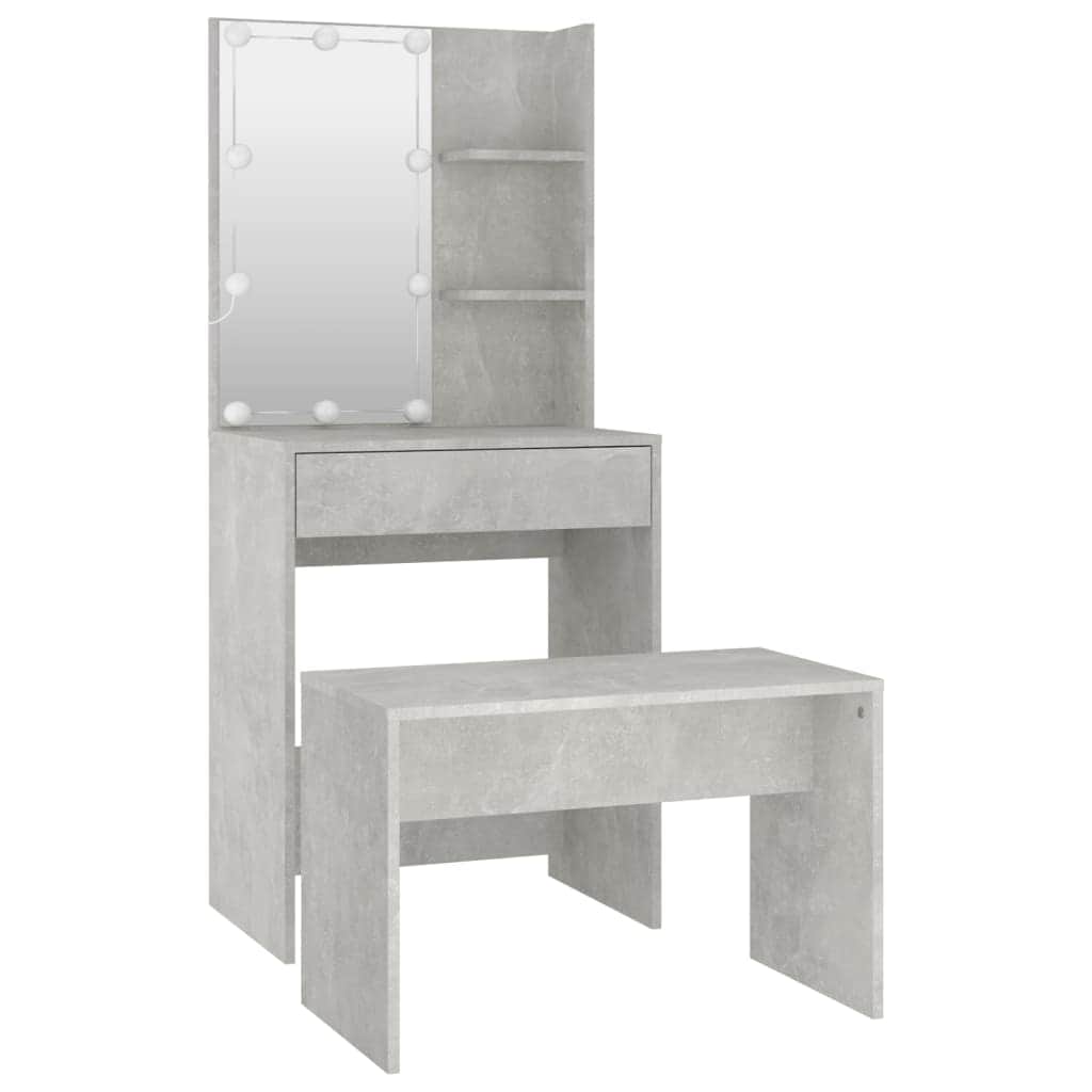 Dressing Table Set with LED Grey Engineered Wood