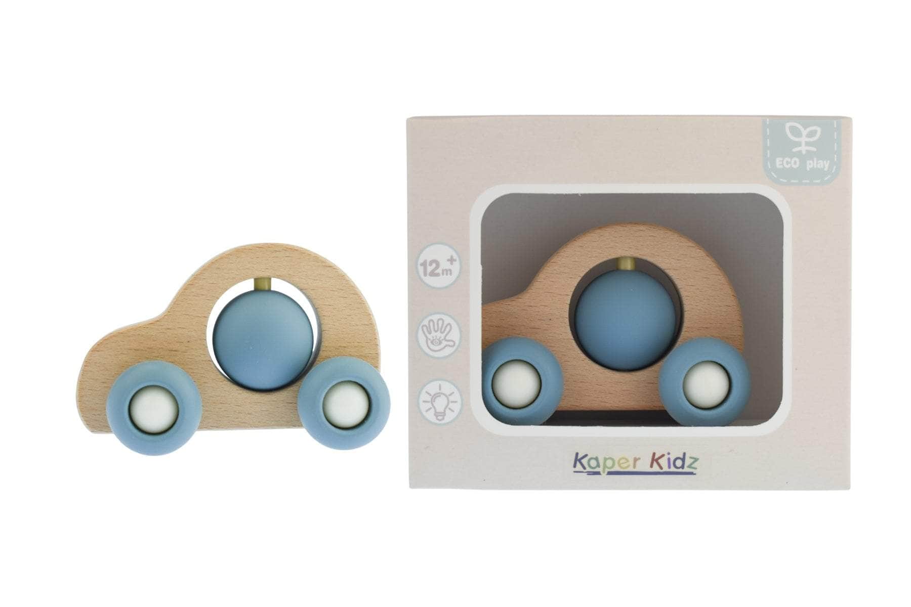 Introducing the EcoSpin Car, where eco conscious design meets playful learning in a delightful package. Crafted from sturdy beech wood and adorned with vibrant, flexible silicone accents, this toy car offers a hands on, engaging play experience for little ones.Each car is equipped with colorful wheels that spin smoothly and a central bead that adds an element of fascination, stimulating fine motor skills and encouraging sensory exploration. The combination of natural wood and soft silicone textures creates an inviting tactile experience that children will love to touch and manipulate.Designed with sustainability at its core, the EcoSpin Car exemplifies eco friendly craftsmanship. Its thoughtful design not only entertains but also educates, fostering imaginative play and supporting cognitive development in toddlers and young children.Whether zooming across imaginary landscapes or parked for creative play sessions, the EcoSpin Car promises hours of sustainable fun. Embrace the joy of learning through play with this innovative toy that embodies quality, creativity, and environmental consciousness.