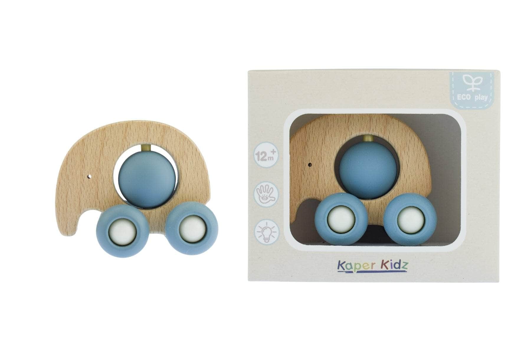 Introducing the EcoSpin Elephant, where eco conscious design meets playful learning in a delightful package. Crafted from sturdy beech wood and adorned with vibrant, flexible silicone accents, this toy elephant offers a hands on, engaging play experience for little ones.Each elephant is equipped with colorful wheels that spin smoothly and a central bead that adds an element of fascination, stimulating fine motor skills and encouraging sensory exploration. The combination of natural wood and soft silicone textures creates an inviting tactile experience that children will love to touch and manipulate.Designed with sustainability at its core, the EcoSpin Elephant exemplifies eco friendly craftsmanship. Its thoughtful design not only entertains but also educates, fostering imaginative play and supporting cognitive development in toddlers and young children.Whether zooming across imaginary landscapes or parked for creative play sessions, the EcoSpin Elephant promises hours of sustainable fun. Embrace the joy of learning through play with this innovative toy that embodies quality, creativity, and environmental consciousness.