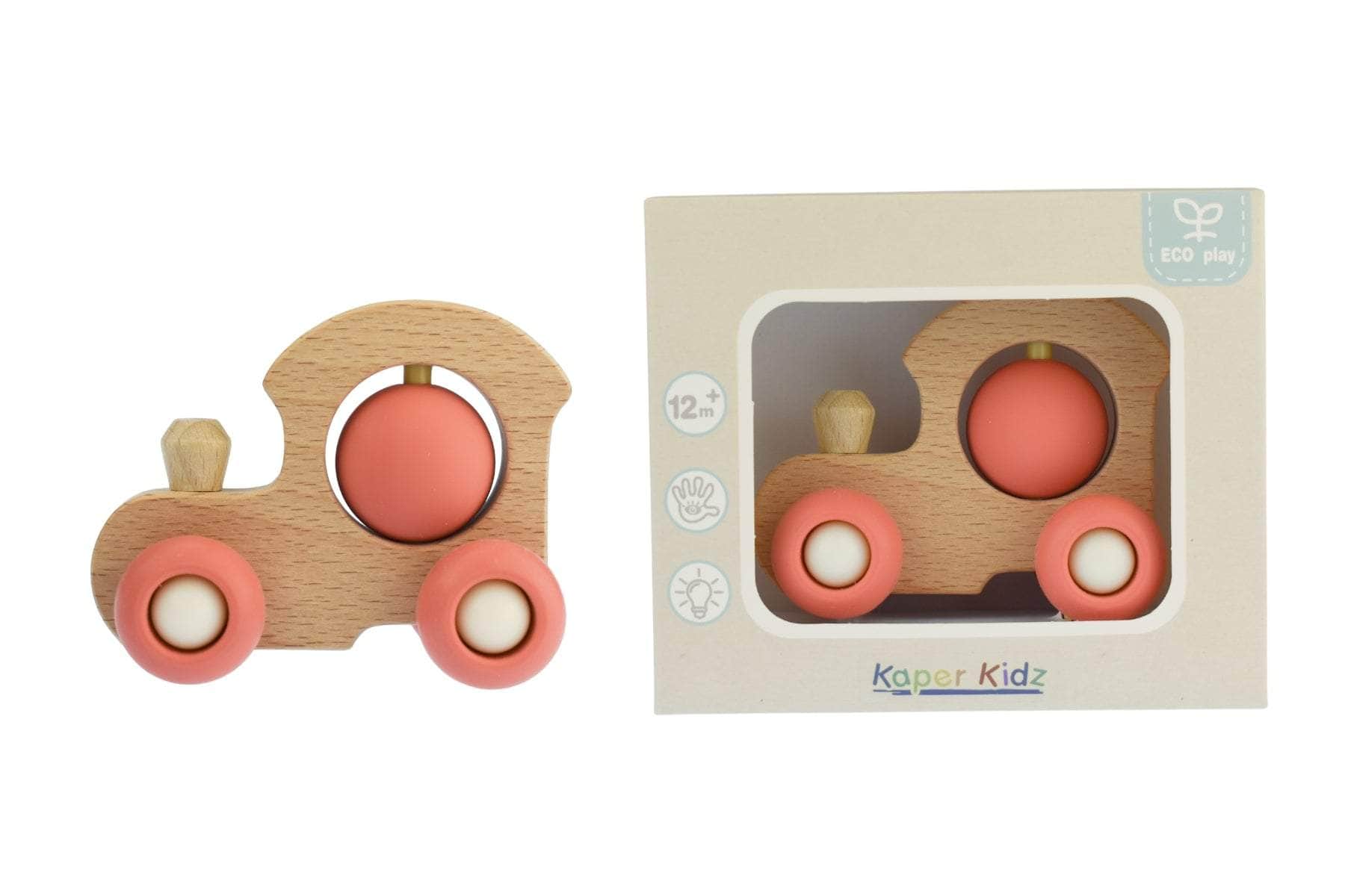 Introducing the EcoSpin Train, a delightful blend of eco conscious craftsmanship and joyful play. Crafted from durable beech wood and adorned with vibrant, flexible silicone in red accents, this train offers a tactile and engaging experience for young explorers.Each train car features colorful wheels that spin and a central bead that delights children with its mesmerizing movement, stimulating fine motor skills and encouraging sensory exploration. The combination of natural wood and smooth silicone creates a sensory rich play environment that children will love to touch and manipulate.Designed with sustainability in mind, the EcoSpin Train is both eco friendly and creatively designed. It not only entertains but also educates, fostering imaginative play and cognitive development in toddlers and young children.Whether chugging along on adventures or parked for imaginative play sessions, the EcoSpin Train promises hours of sustainable fun. Embrace playful learning with this innovative toy that embodies quality, creativity, and eco conscious values.