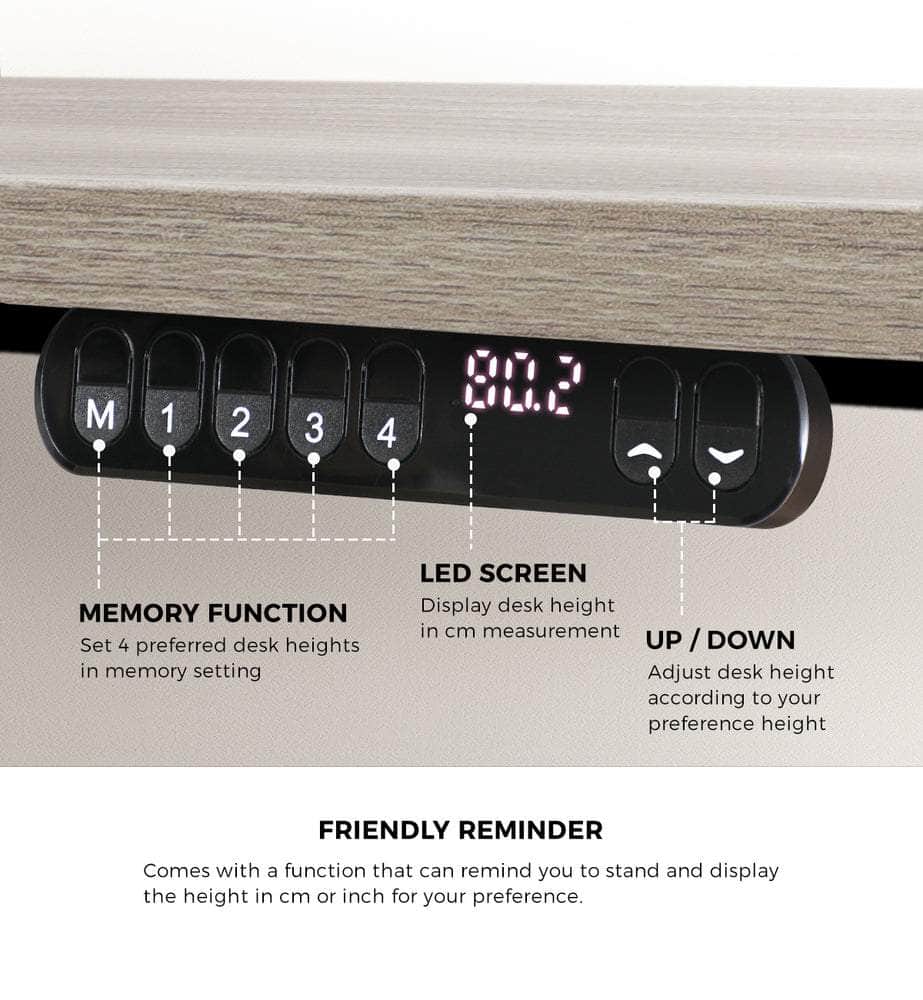 Prioritize your well-being with the desk's ergonomic brilliance, allowing you to easily switch between sitting and standing positions with the reminder function. Reduce fatigue, improve posture, and enhance overall comfort during your workday, all while taking control of your health.