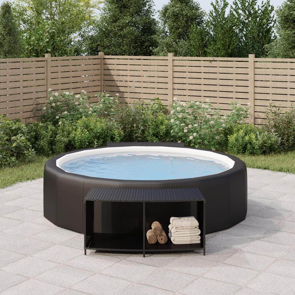 These poly rattan storage shelves are an ideal addition to your pool, spa, backyard and any other outdoor living space. Durable material: PE rattan, also known as poly rattan, is weather resistant and easy to clean. It remains beautiful on the outside for a long period of time. It's more economical than other materials, while offering great quality, convenience and an aesthetic look.Stable frame: The display shelf unit's frame is made of powder-coated steel. Steel is an exceptionally hard and strong material. It offers sturdiness and stability. The powder coating on steel creates a protective layer against wear and tear.Storage space: Featuring a built-in storage area, the outdoor shelf unit keeps all the essentials organised and within easy reach.