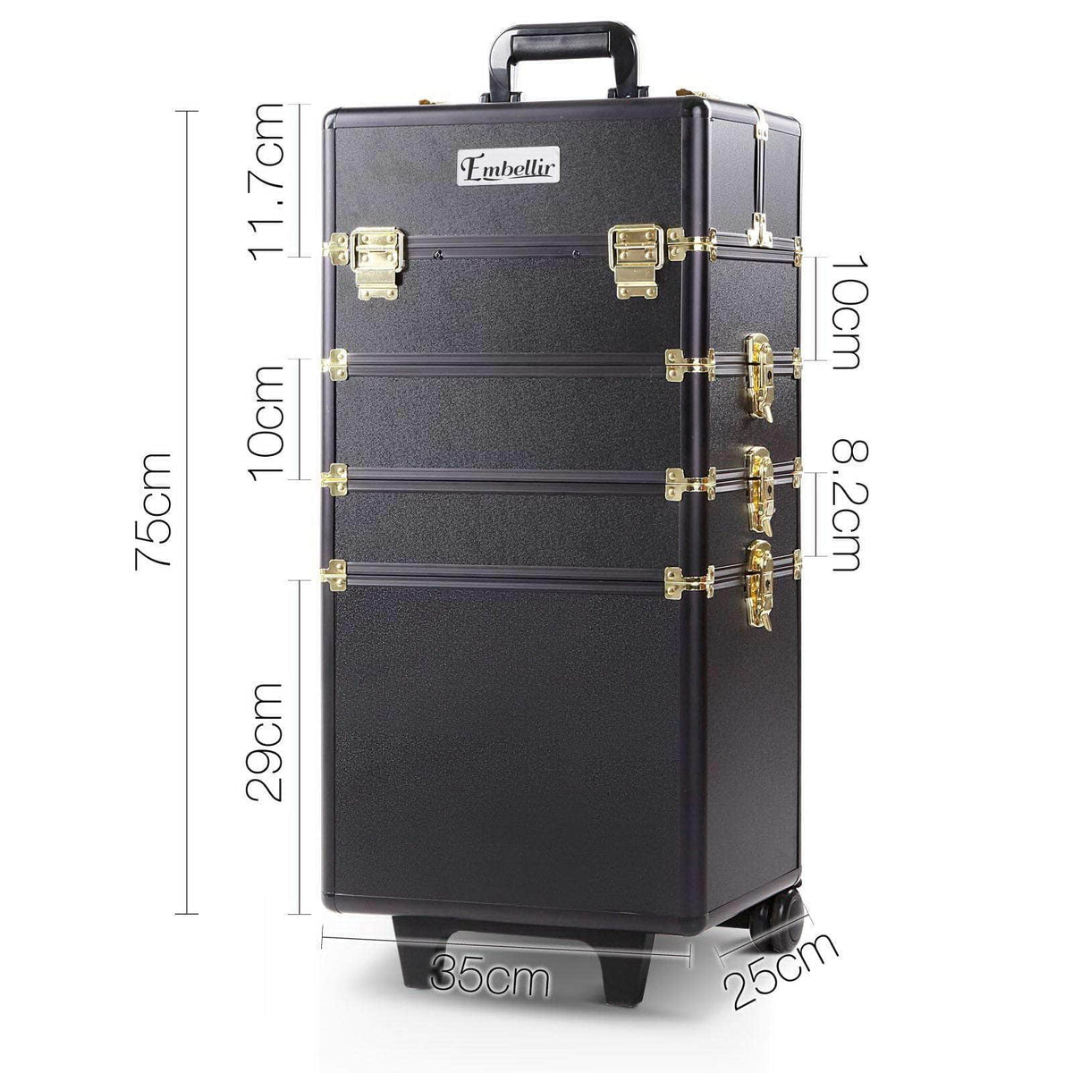 Makeup Case Beauty Trolley Cosmetic Organiser Box Travel Wheels Gold