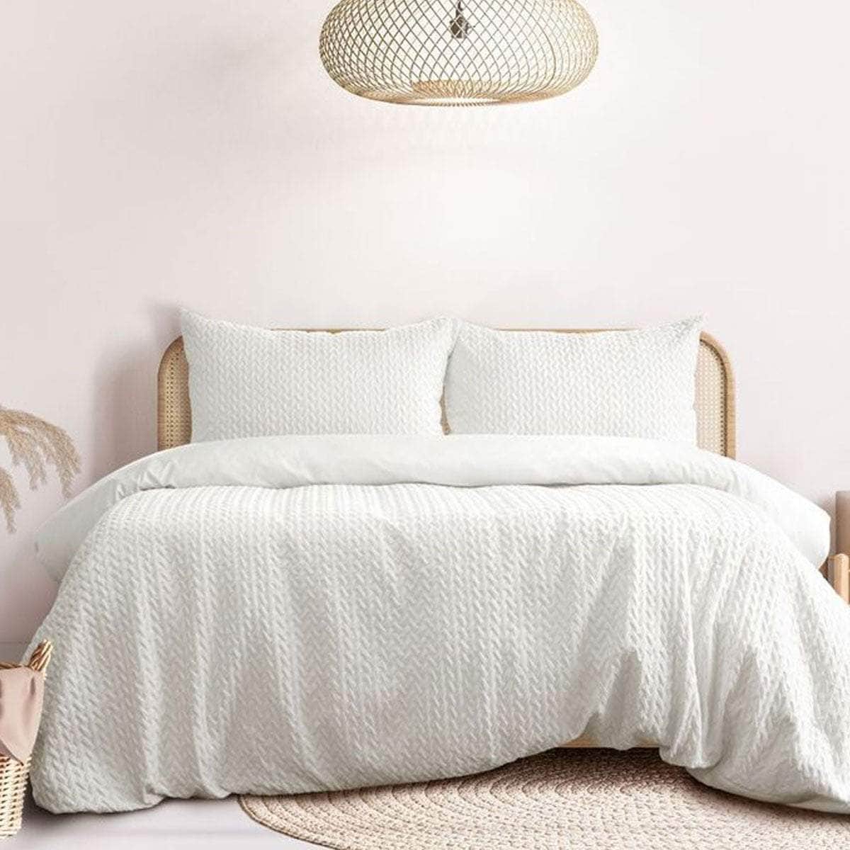 Give your bedroom interior some freshness with this Embossed Quilt Cover Set Bondi White by . Bondi's embossed pattern front is reminiscent of the organic textures left in the wet sands on a stretching coastal shore. Paired with a plain dyed reverse in a fresh white colour, Bondi gives an instant refresh in your bedroom decor. It is made from quality and soft touch Polyester fabric for that perfect relaxation you need.