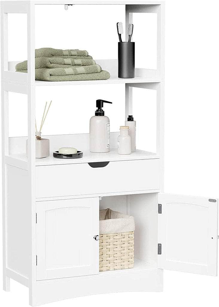 VASAGLE Floor Cabinet with Drawer 2 Open Shelves and Double Doors White