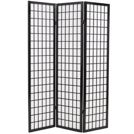 This Japanese-style room divider, measuring 120 cm in width and 170 cm in height, is ideal for creating privacy or sectioning off a part of the room. It will make a practical as well as decorative addition to your bedroom, living room or office. The dressing screen has a solid wooden trellised frame and is covered in translucent shoji rice paper that provides privacy without completely blocking light. The room divider can also be easily folded away to save space when not in use. Add a touch of classic Oriental charm to your interior with our graceful Japanese-style room divider!