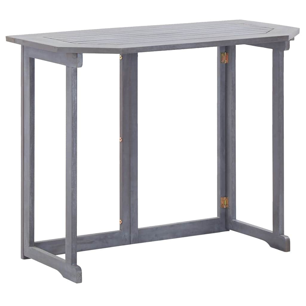 This foldable balcony wooden table exudes rustic charm and will make a great addition to your balcony, terrace or patio. It serves as a coffee table for placing drinks or as a convenient worktop for keeping items such as garden tools and potted plants. Crafted from solid acacia wood with a grey wash, our outdoor table is durable, easy to maintain and weather resistant. The balcony table can be folded away to save space when not in use. This product needs assembly. Please note that wood is a natural product and can show imperfections.