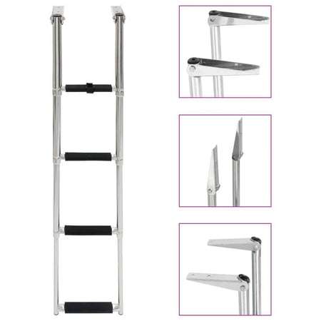Featuring telescopic design, this boarding ladder will be an essential besides your swimming pool, boat and other mounting platform. Distinctive telescopic design ensures the ladder could fold quickly and easily, so as to assist you to board safely. Every step features a slip-proof tread which could assure the safety in the maximum degree. Made of high strength stainless steel, the boat ladder offers maximum durability and could bear large weight of 250 kg. An strap can fix the steps when not in use. Mounting accessories are included.