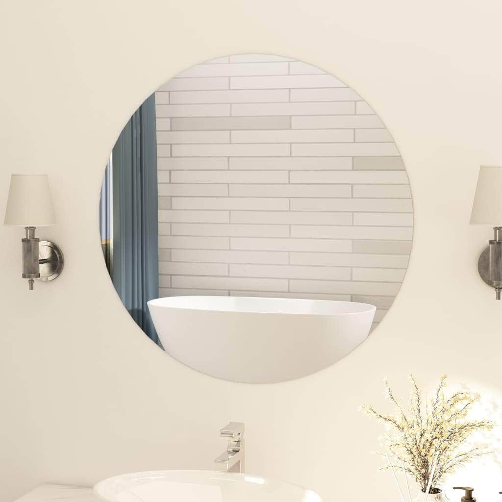 Simple and elegant, this round frameless wall mirror reflects your refined style. It will not only make a decorative statement, but also bring more light and a spacious effect to the room. The mirror is made of quality glass which make it relatively durable and highly reflective. The clean-cut, frameless design looks fantastic in any home and will enhance the brightness of the room and increase the sense of space. It is easy to install with all necessary mounting hardware included.