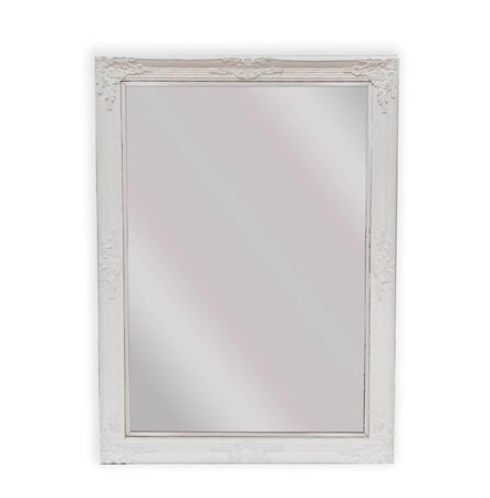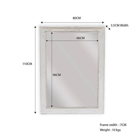 The French Provincial Ornate Mirror in White - Small 80cm x 110cm is a beautiful and elegant addition to any home decor. The mirror measures 80cm x 110cm and is made from high-quality materials, including wood and mirror.