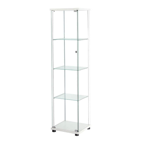 Modern storage meets elegant display in this striking Cabinet. Featuring pristine tempered glass and robust particle board construction, this cabinet creates an ideal showcase for your cherished collections. The four-tier design maximises vertical space, while magnetic doors ensure secure closure and easy access to your displayed items.