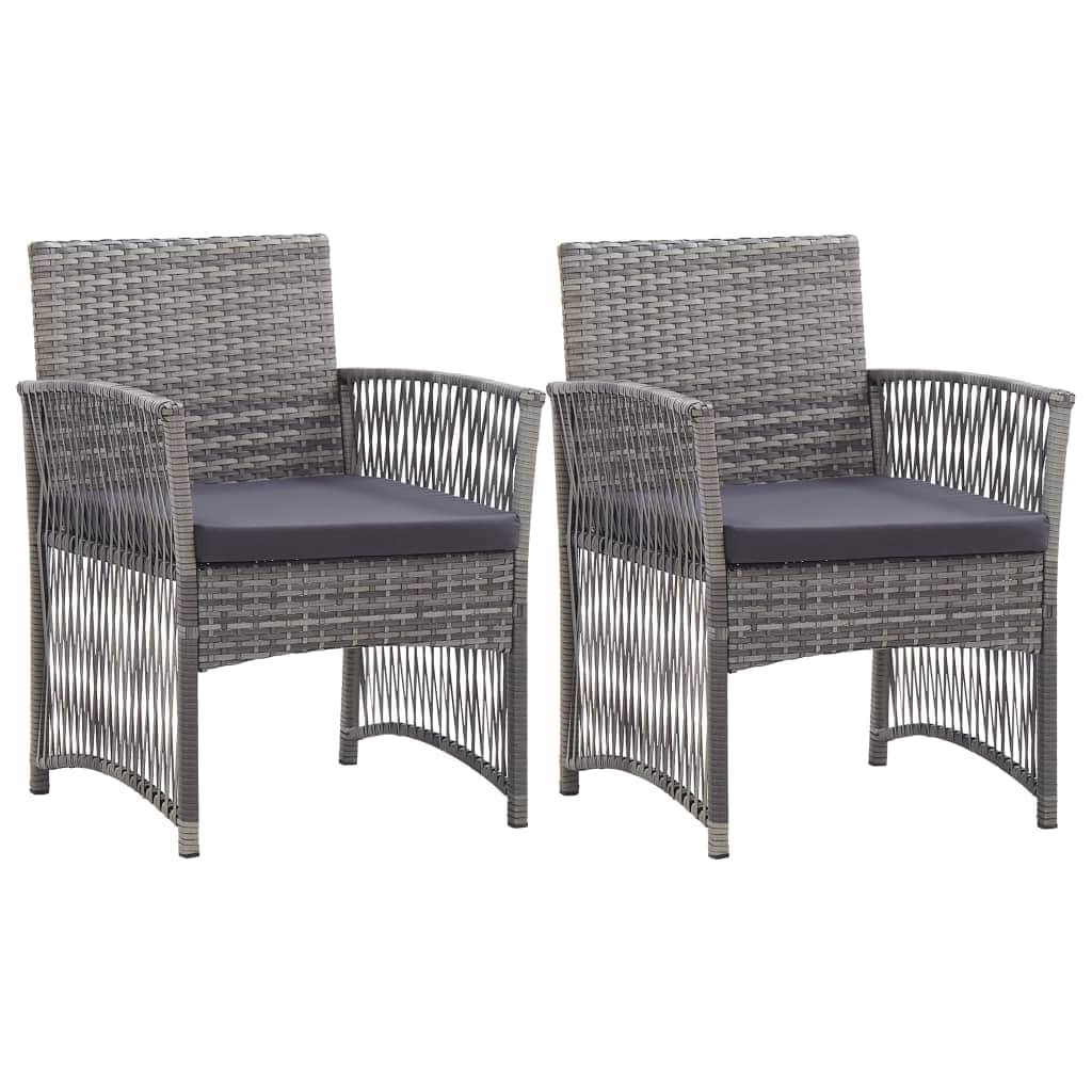 This set of 2 garden chair provides elegant style and comfortable enjoyment space for your outdoor life. Combines style and function, this chair set is suitable for all-year around use. It is made of powder coated steel and PE rattan construction, which is sturdy enough to withstand frequent use. With the thickly padded seat, this chair set provides extra lounging comfort for you. Thanks to its lightweight construction, you can easily move it around house. The cushion cover with zipped design allows you to wash it with great ease. Delivery includes 2 chairs.
