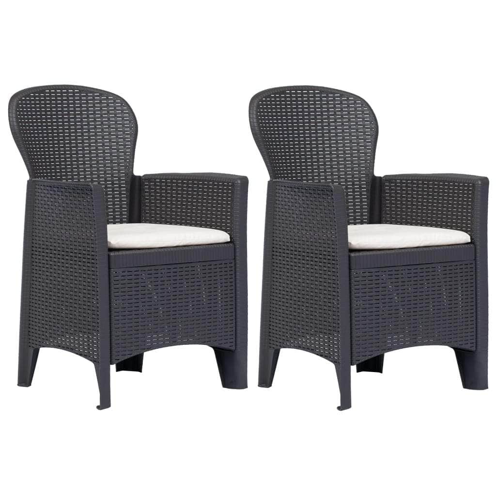 Our plastic garden chairs will make a great addition to your garden, terrace or patio. The outdoor dining chairs are made of durable plastic, which makes them weather resistant and easy to clean. Their rattan look design adds a touch of natural charm to your outdoor living space. The garden chairs are also lightweight and easy to move around. These garden chairs are easy to assemble. Delivery includes 2 plastic chairs and 2 seat cushions.