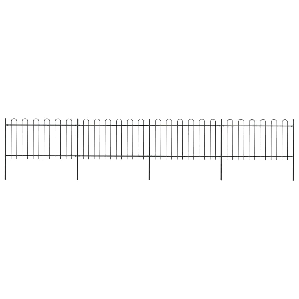 Create an elegant fence around your garden, home, or walkway with our garden fence! Our decorative steel garden fence, consisting of 4 fence panel and 5 posts, has a total length of 6.8 metres. It will form a sturdy, safe and maintenance-free perimeter barrier for your garden, home, or business property. With vertical bars with hoop top and strong horizontal brace as reinforcement to the frame, our garden fence will provide a high degree of security. Manufactured from heavy-duty, powder-coated steel, the outdoor fence is very strong and thus stable, sturdy and durable. Thanks to the included mounting materials, the garden fence is easy to assemble. Note: You can buy more sets to make the fence as long as you like.
