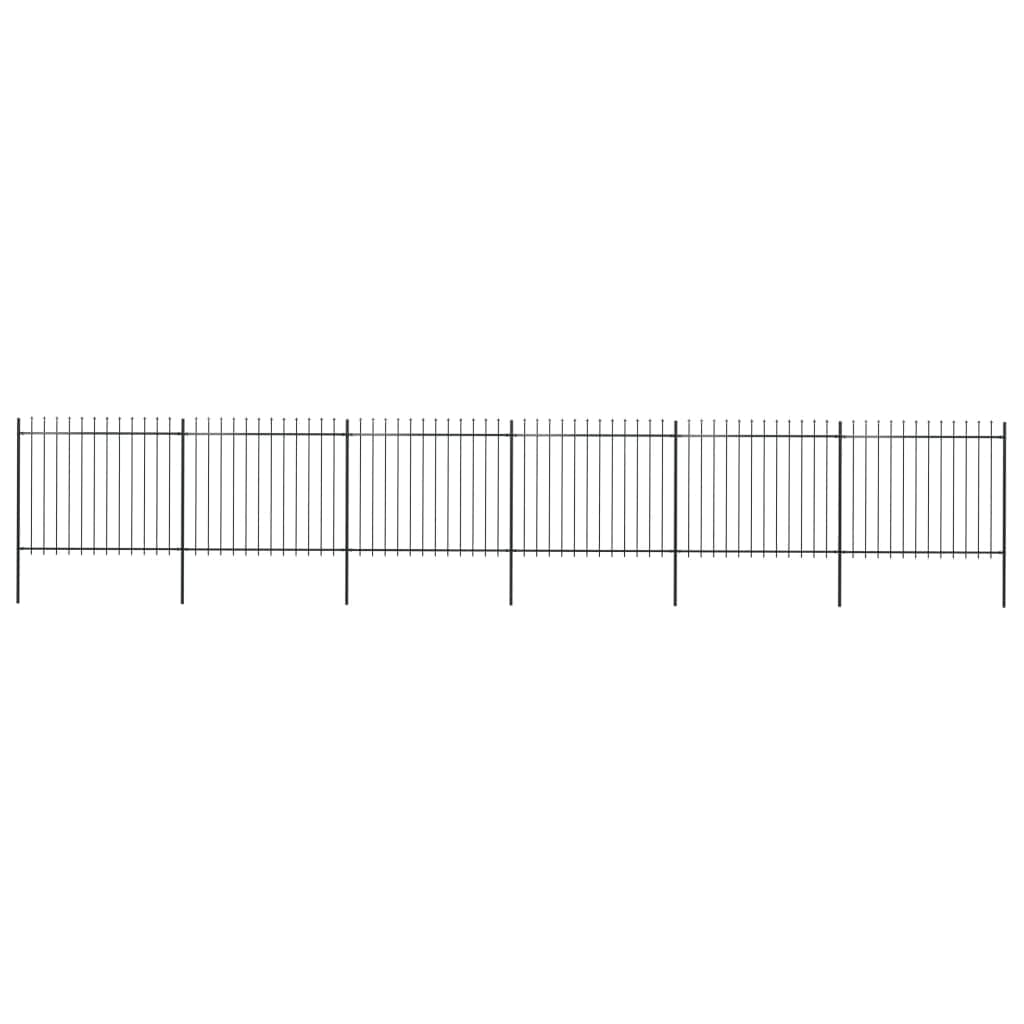 Create an elegant fence around your garden, home, or walkway with our garden fence! Our decorative steel garden fence, consisting of 6 fence panel and 7 posts, has a total length of 10.2 metres. It will form a sturdy, safe and maintenance-free perimeter barrier for your garden, home, or business property. With vertical bars topped with spear ends and strong horizontal brace as reinforcement to the frame, our garden fence will provide a high degree of security. Manufactured from heavy-duty, powder-coated steel, the outdoor fence is exceedingly stable, sturdy and durable. Thanks to the included mounting materials, the garden fence is easy to assemble. Note: You can buy more sets to make the fence as long as you like.