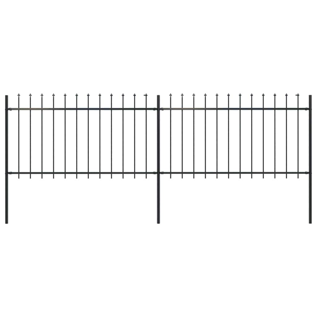 Create an elegant fence around your garden, home, or walkway with our garden fence! Our decorative steel garden fence, consisting of 2 fence panel and 3 posts, has a total length of 3.4 metres. It will form a sturdy, safe and maintenance-free perimeter barrier for your garden, home, or business property. With vertical bars topped with spear ends and strong horizontal brace as reinforcement to the frame, our garden fence will provide a high degree of security. Manufactured from heavy-duty, powder-coated steel, the outdoor fence is exceedingly stable, sturdy and durable. Thanks to the included mounting materials, the garden fence is easy to assemble. Note: You can buy more sets to make the fence as long as you like.