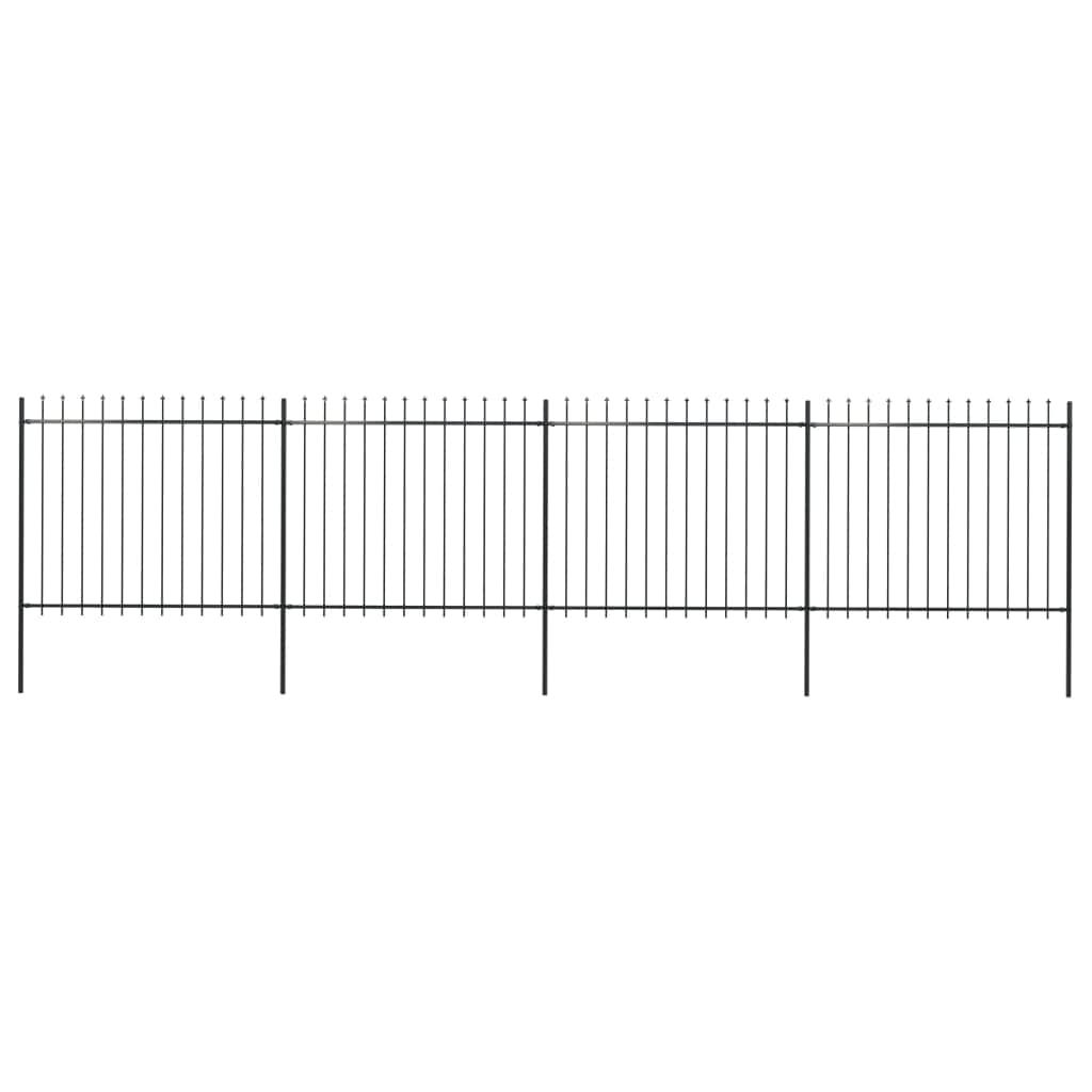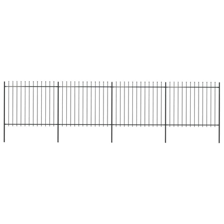 Create an elegant fence around your garden, home, or walkway with our garden fence! Our decorative steel garden fence, consisting of 4 fence panel and 5 posts, has a total length of 6.8 metres. It will form a sturdy, safe and maintenance-free perimeter barrier for your garden, home, or business property. With vertical bars topped with spear ends and strong horizontal brace as reinforcement to the frame, our garden fence will provide a high degree of security. Manufactured from heavy-duty, powder-coated steel, the outdoor fence is exceedingly stable, sturdy and durable. Thanks to the included mounting materials, the garden fence is easy to assemble. Note: You can buy more sets to make the fence as long as you like.