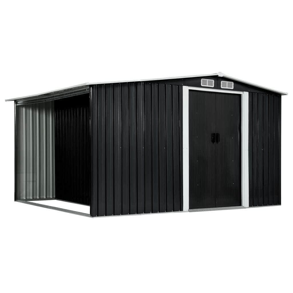 Our storage shed will be perfect for storing a wide variety of tools, logs and garden equipment. This storage house are equipped with vents, designed as shutters, which not only keep the rain away but ventilate all the time to reduce the accumulation of moisture and odor in the house. Its double sliding doors in the front allow easy entry and exit. They can be secured together with a padlock (not included) through the pre-drilled holes in the handles. Thanks to corrosion-resistant galvanised steel, the log shed is sturdy and durable, and built to last. The outdoor storage house needs assembly.
